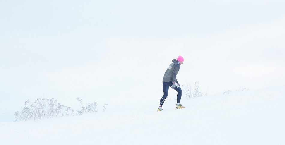 Det finns förstås många typer av vinterväder som kan bjuda på tuffa utmaningar för en löpare. Låga temperaturer i kombination med vind är särskilt besvärligt. Då är jackor och tights med någon form av vindtät front och paneler med ventilerande material baktill ofta ett bra val.