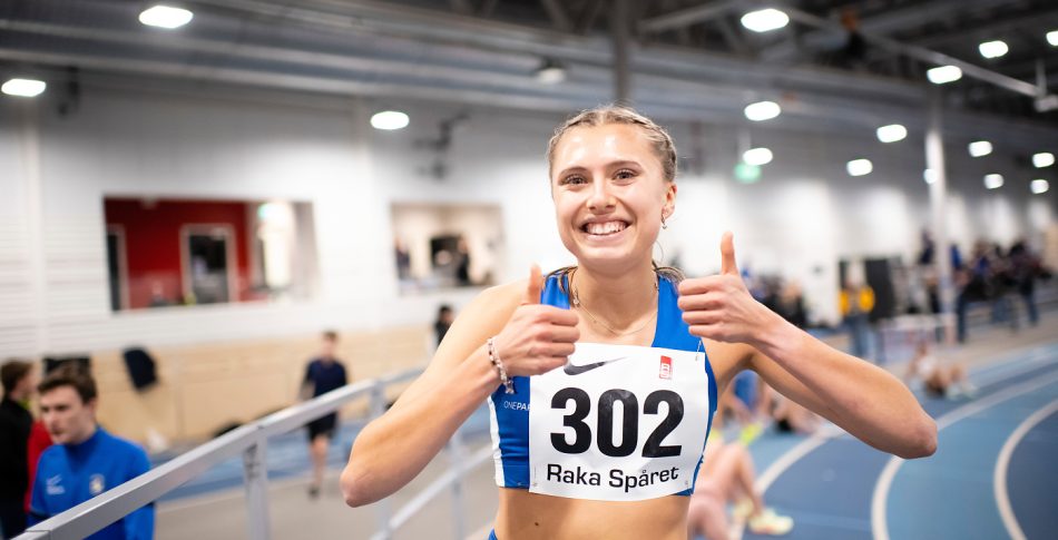 Örgrytelöparen tog hem segern på fina 2.02,91, vilket är nytt PB och endast sex tiondelar från hennes utomhuspers. Systern Julia gjorde även hon ett fint lopp och kom i mål på 2.05,74. Tiderna gör dem till etta och trea i Sverige i år.