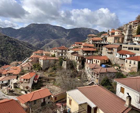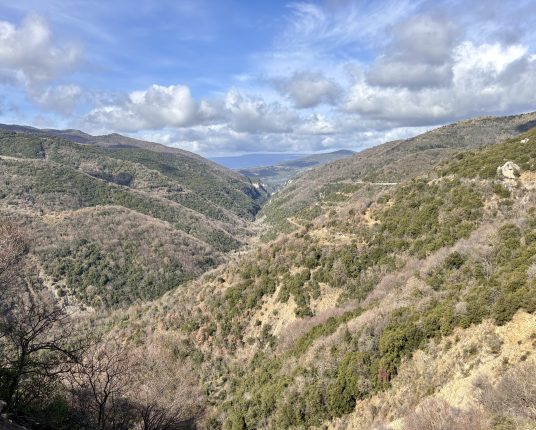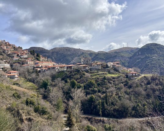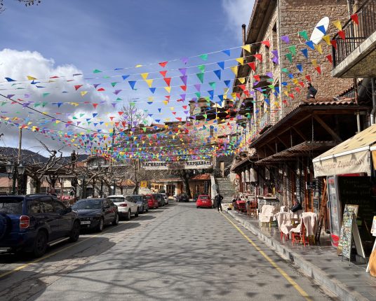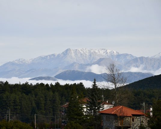Jag hann inte mer än rulla ut ur Vytina, en by på drygt 1000 meters höjd, förrän jag såg de snöklädda bergstopparna på distans. Bara några minuter senare skulle Vasaloppet köra igång och jag kunde därmed konstatera att det förmodligen var mer snö i Grekland än i Dalarna.