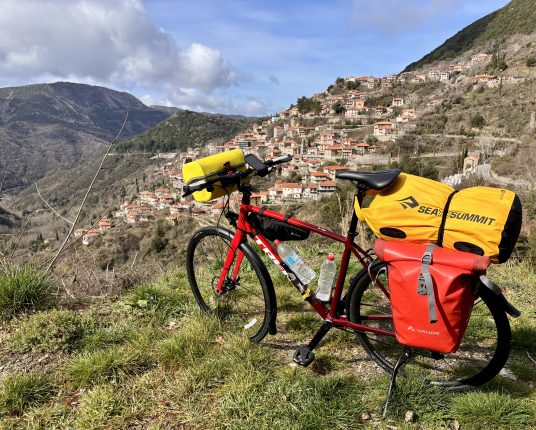 Peloponnesos, den grekiska halvön som är som gjord för långfärdscykling. Fina vägar och inte minst, en otrolig geografi att susa igenom.