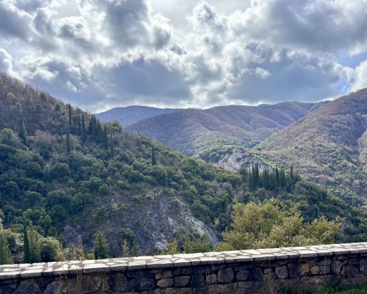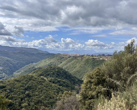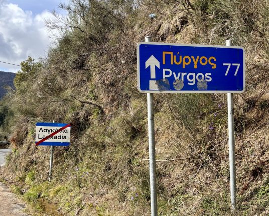 Vid mina tidigare cykelresor från Panathinaikostadion i Aten och vidare till Olympia på Peloponnesos har jag uteslutande begagnat mig av den vackra kustvägen på halvöns norra sida. En sträcka som är relativt lättcyklad och med inte alltför många höjdkurvor. Rutten jag valde denna gång från Poros via en sydligare rutt genom Peloponnesos bjuder däremot på en helt annan geografi. Det handlar om rejäla stigningar till nästan 1200 meters höjd. Men… hela tiden med vackra miljöer, dock inte riktigt på samma nivå som kustvägen mellan Korinth och Patras.
