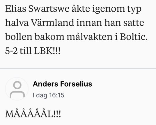 Det kändes därmed betydligt lättare när jag efter att domaren blåst av matchen att rulla ner de återstående kilometrarna till klassiska Olympia. Platsen där allt började 776 f.kr. Nu återstår det bara att göra bandyn till en olympisk sport så har Baron Pierre de Cobertin fullbordat sin olympiska tanke…