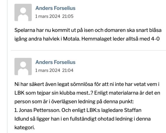 Strax utanför Olympia var det dags för eftemiddagsjobb i form av liverapportering från elitseriekvalet i bandy mellan Boltic och Ljusdal. Med hjälp av modern teknik går allt att lösa numera.