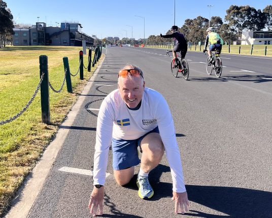 Lördagslöpning med australiensiska vänner runt Albert Park Lake.