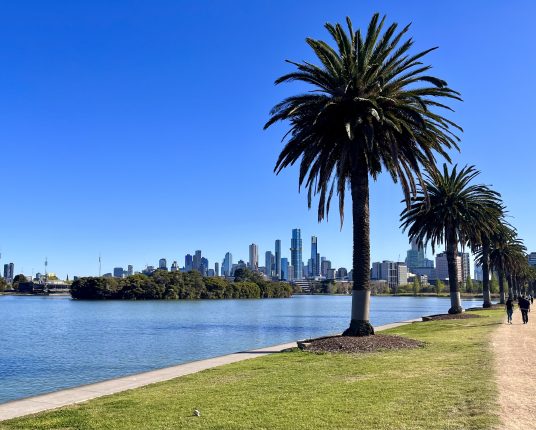 Löpning runt Albert Park Lake i Melbourne. Central Park i New York har definitivt fått tuff konkurrens!