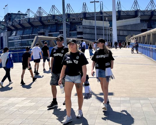 Collingwood-supportrar i närheten av MCG (Melbourne Cricket Ground) några timmar innan matchstart.