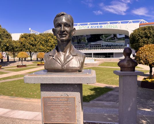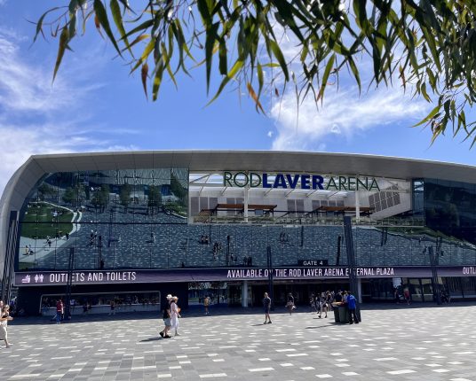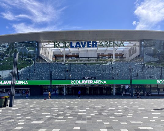Rod Laver Arena, Melbourne. Idrottsanläggningarna är väl samlade i Melbourne. Det är bara typ en toppad järnfemma mellan tennisarenan och Melbourne Cricket Ground. Inte långt därifrån hittar man även formula-1-banan och alla andra anläggningar. 6-0 6-0 6-0 till Melbourne i alla möjliga sammanhang!