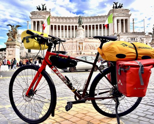 Glada miner på den första vändan av tretton utmed Tibern. Bansträckningen är betydligt roligare än vad det låter eftersom man hela tiden möter vänner och bekanta.
