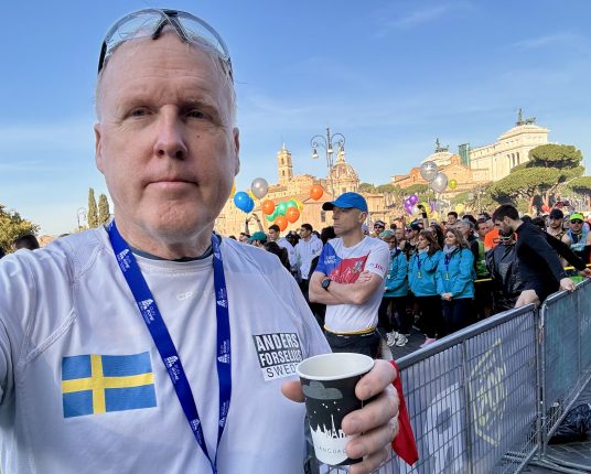 Morgonpigga löpare som precis har sprungit Rom Marathon dagen innan och som bara hann skyffla i sig lite pasta och sova ett par timmar innan det var dags igen…